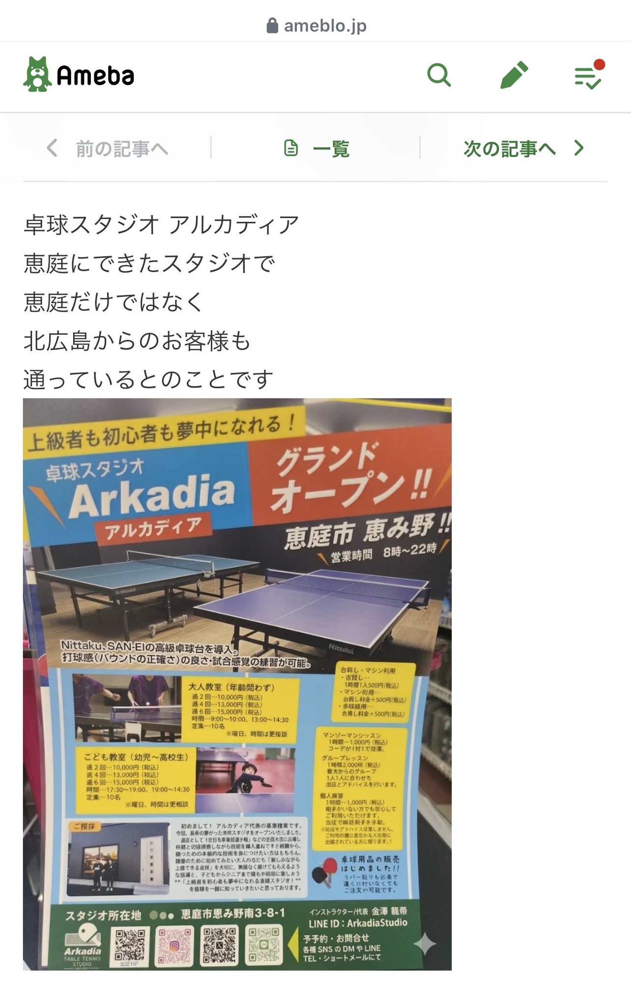 先日札幌の卓球ショップスポキタさんが卓球スタジオアルカディアをブログにて紹介してくれました!